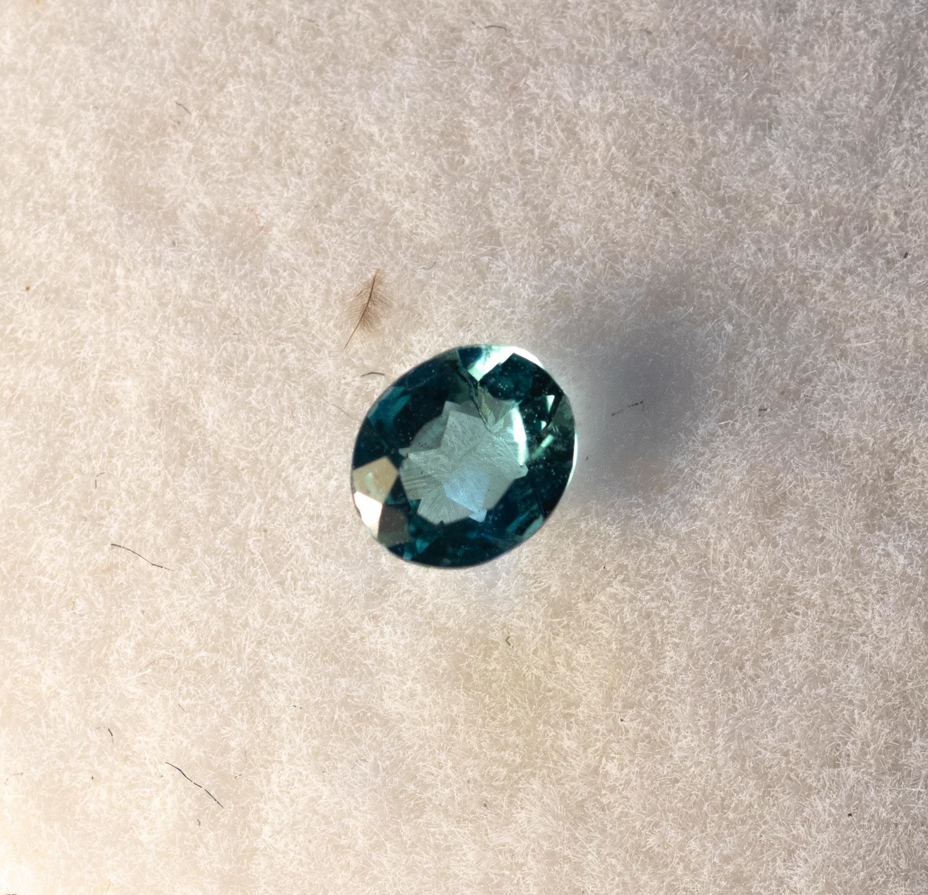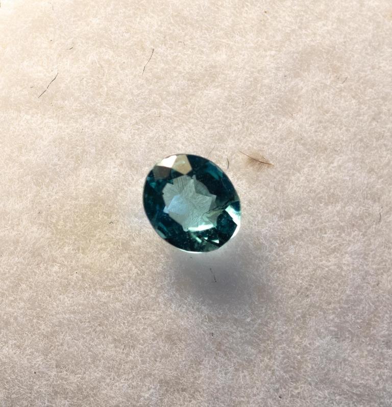 Turmalina Paraíba de Brasil, con corte ovalado, 0,15 ct, con dimensiones de L 4,30 mm x A 3,50 mm x H 2,00 mm, destaca por su hermoso color azul brillante. Pequeñas inclusiones le otorgan a esta piedra preciosa un carácter único y realzan su belleza natural.