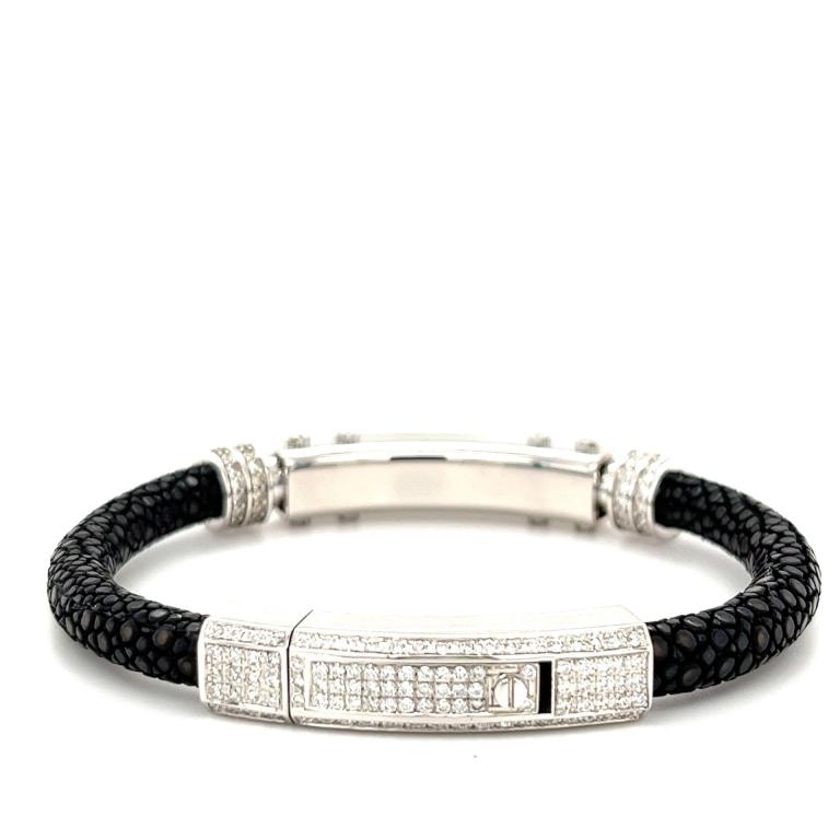 750 Beyaz Altın Deri Kayışlı Bileklik